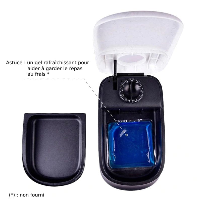 La nourriture est placée dans une gamelle amovible, ce qui permet de la laver séparément.
